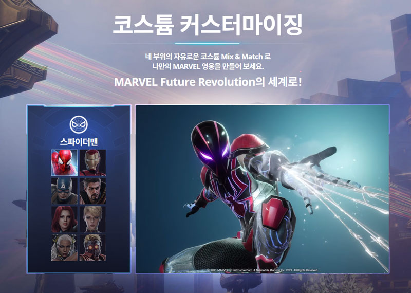 마블 퓨처레볼루션은 마블의 다양한 히어로를 직접 플레이할 수 있는 최초 모바일 MMORPG입니다. 직접 플레이해보니 캐릭터의 완성도와 스킬의 표현이 매우 만족스러웠는데요.