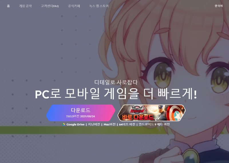 모바일에서도 프레임 드롭 없이 원활하게 즐길 수 있지만 빠른 레벨업을 위해서는 pc에서 즐기는 것이 더욱 편리합니다. 복잡한 과정 없이 앱 플레이어를 다운로드하면 바로 플레이할 수 있으니 아래 내용을 참고해주세요.