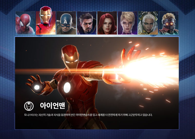 현재 게임에서 즐길 수 있는 캐릭터는 총 8명입니다. 스파이더맨, 아이언맨, 캡틴 아메리카, 닥터 스트레인지, 블랙위도우, 캡틴 마블, 스톰, 스타로드 중 1명을 선택하여 플레이할 수 있습니다.